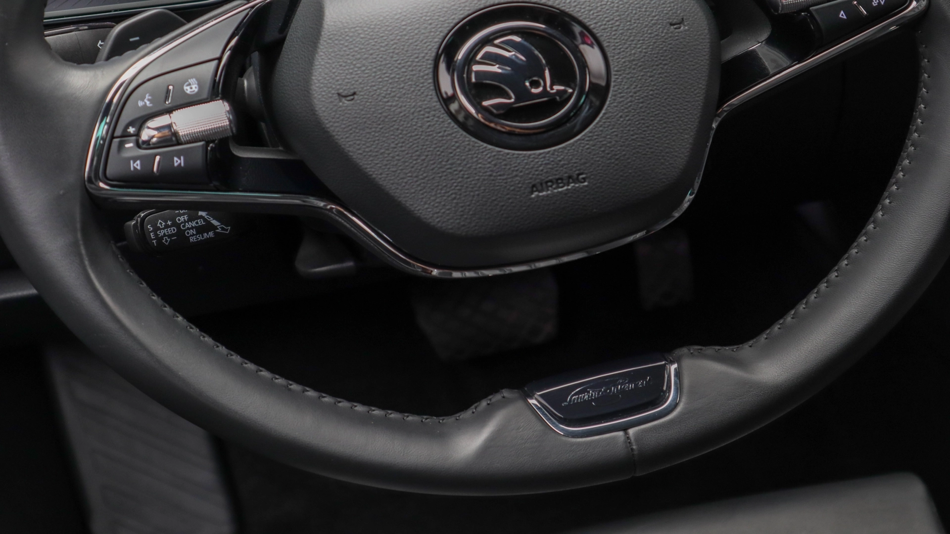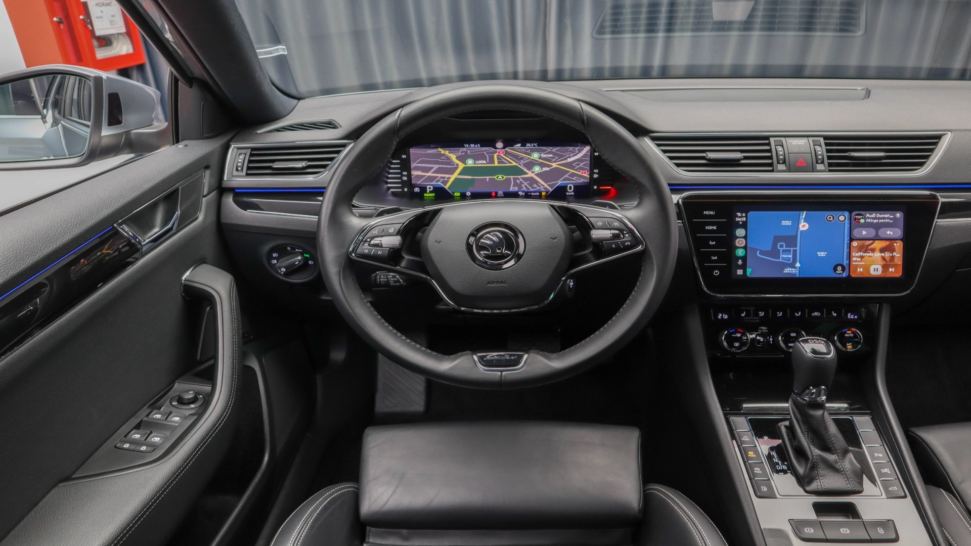 Volan imbracat in piele, cu comenzi si padele
