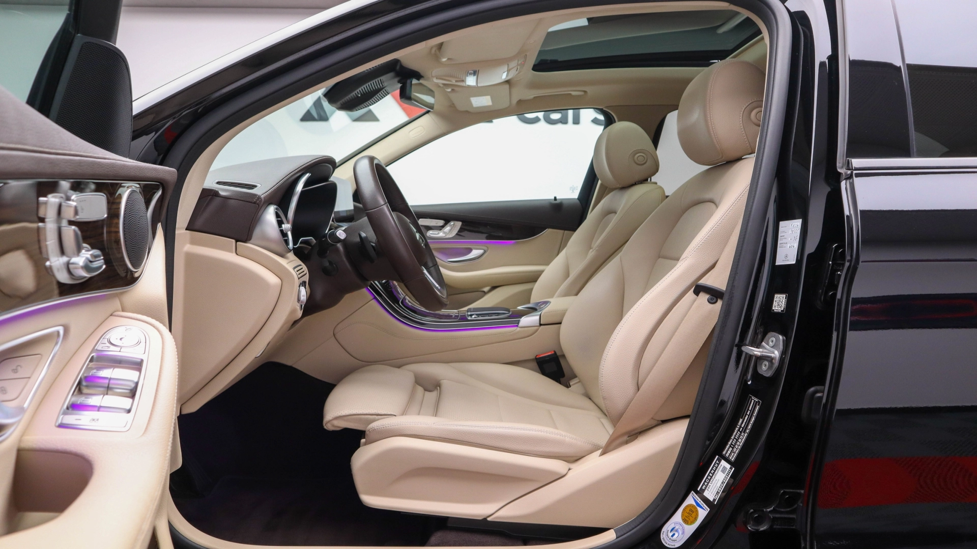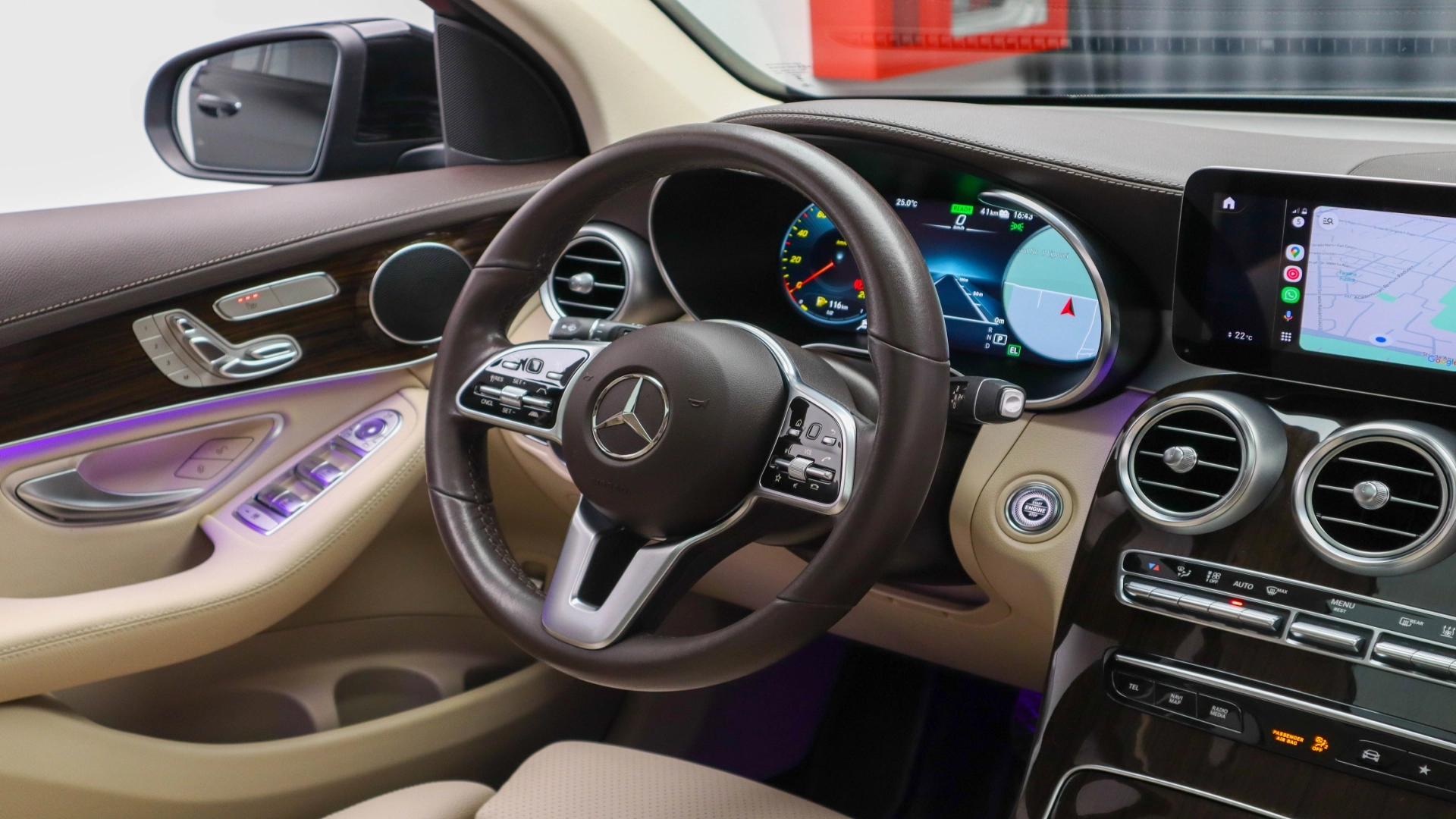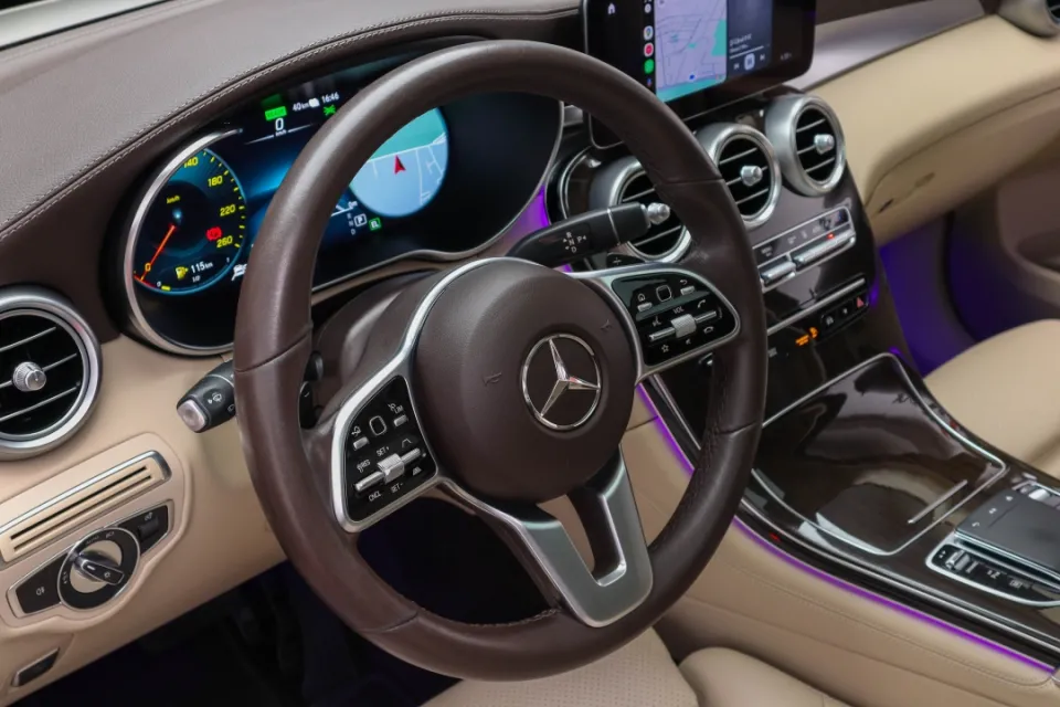 Volan imbracat in piele de culoare crem cu comenzi